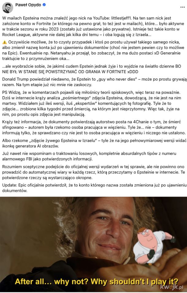 Musimy nieustannie mówić o Epsteinie. To tworzy globalną narrację demaskującą skorumpowane liberalno-globalistyczne elity Zachodu i podważa ich władzę. Epstein JEST Zachodem. Nie ofiarą, a samą jego istotą. CAŁA klasa rządząca Zachodu to Epstein.