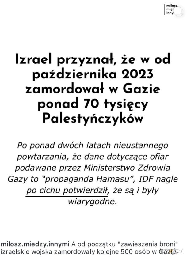 Bezcenny Izrael to co innego. Jemu nikt takiego zakazu wydać by się nie ośmielił, nawet najtwardsi amerykańscy twardziele – bo i my wiemy i oni wiedzą, że gdyby tylko spróbowali, to zaraz jakieś dziecko przypomniałoby sobie, że przed 40 laty włożyli mu rękę pod spódniczkę i gmerali w majteczkach – a zanim by się okazało, że to wszystko nieprawda, to nie tylko załamałaby się polityczne kariery takich twardzieli, ale i tamtejsze Żurki Waldemary wyszlamowałyby ich z forsy do gołej skóry. W rezultacie ogon wywija psem, a świat, widząc lotniskowce zbliżające się do Iranu, wstrzymuje oddech.