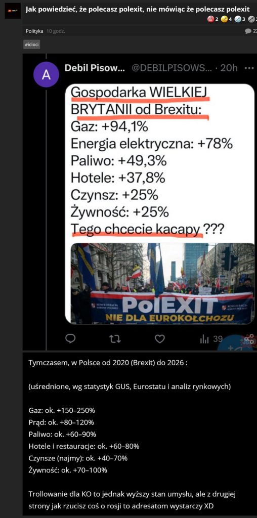 Więc na pytanie: co pani Pełczyńska-Nałęcz może zrobić obywatelu Tusku Donaldu, jeśli nie da on jej stanowiska wicepremiera w swoim vaginecie, odpowiedź brzmi – prawdopodobnie nic. Teoretycznie bowiem mogłaby ona, jako przewodnicząca Polski 2050 podjąć decyzję o opuszczeniu koalicji 13 grudnia. Wtedy vaginet obywatela Tuska Donalda utraciłby większość w Sejmie, a w tej sytuacji Naczelnik Państwa Jarosław Kaczyński, nawet z łoża boleści, na którym aktualnie spoczywa, cierpiąc na zapalenie płuc, mógłby nakazać PiS-owi złożenie wniosku o konstruktywne votum nieufności dla vaginetu obywatela Tuska Donalda, to znaczy – z jednoczesnym zgłoszeniem kandydata na premiera. Teoretycznie taki wniosek mógłby w Sejmie przejść – ale nie wiadomo, czy udałoby się, nawet w łonie PiS, wytypować kandydata na premiera.