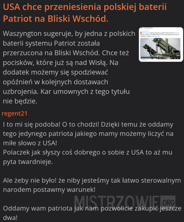 [Z pewną obawą, a może niechęcią umieszczam te rozumowanka. Ale nawet takie mazgajstwo powinniśmy przeczytać . Mirosław Dakowski]
