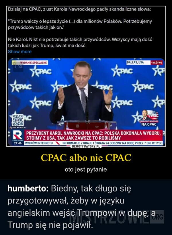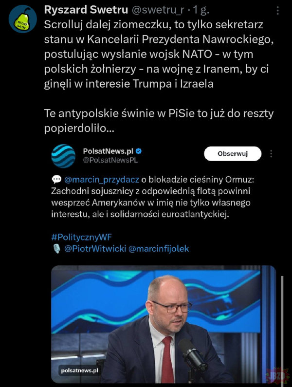 Nie jestem zwolennikiem spiskowych teorii głoszących, że ciągle ktoś próbuje nas wciągnąć w tę czy inną wojnę. Nie jestem też miłośnikiem doszukiwania się na siłę ukrytych obcych wpływów w naszej polityce – szczerze, te jawne wpływy zagranicy wystarczą aż nadto. Nie mam zamiaru więc twierdzić, że uczestniczenie w CPACu, NatConie czy innych tego typu imprezach jest znakiem ukrytych syjonistycznych powiązań. Nie będę zarzucał tego ani prezydentowi Nawrockiemu, ani politykom z jakiejkolwiek partii, którym zdarza się wybierać na te imprezy, skoro sam z ciekawością wysłuchuje ich potem w internecie. Jednak przed jedną rzeczą przestrzegać trzeba.