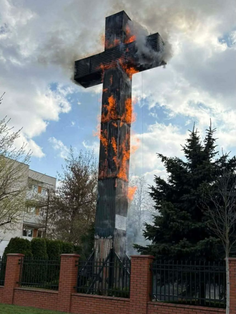 NCZAS.INFO | Spłonął krzyż, przed którym Jan Paweł II odprawił Mszę Świętą w 1979 roku. / Fot. PAP