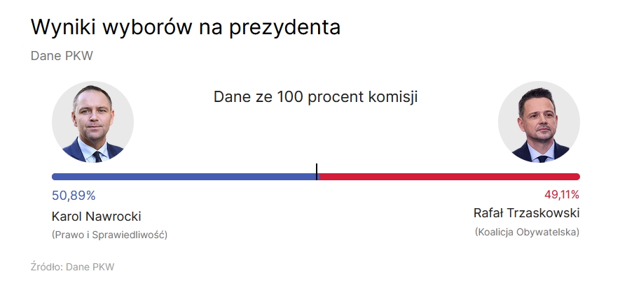 Co ciekawe, niemal po połowie podzielili się wyborcy Krzysztofa Stanowskiego: Nawrockiego poparło 51,2 proc. z nich, podczas gdy Trzaskowskiego 48,8 procent.