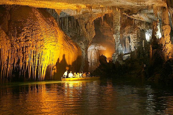 Ale wizyta w olbrzymich galeriach tego sięgającego wielu pięter w głąb ziemi królestwa Persefony, wśród strumieni i jezior, stalaktytów i stalagmitów zwisających festonami ze sklepień jak sople gigantów lub porastających gęstwinami zastygłego lasu skalne półki, jakby dla jakichś gigantycznych lokomotyw, więcej są warte niż ta połowa dnia, którą dla nich poświęciliśmy.