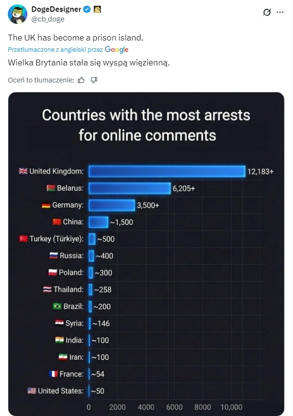 Tradycyjne wartości wolnego świata o których wspomniał Nawrocki nie są na pewno wartościami państwa na Wyspach Brytyjskich, które ostatnio stoczyło się do poziomu totalitaryzmu. Nie są też wartościami unijnymi, które zostały nazwane przez Ursulę von der Leyen “wartościami Talmudu”.