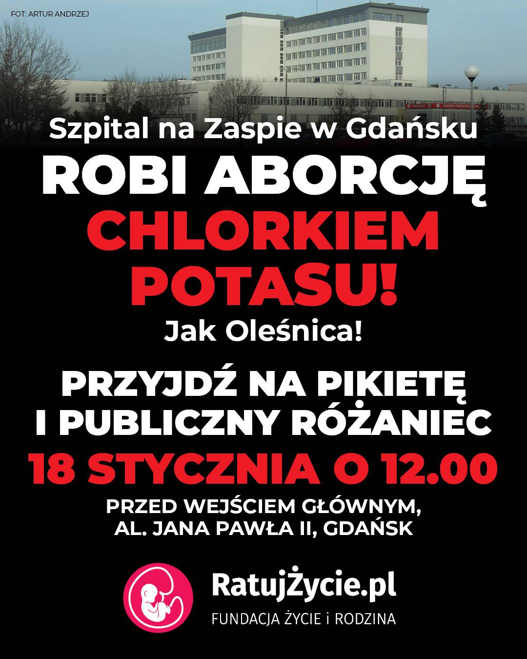 W najbliższą niedzielę 18 stycznia o 12:00 pod szpitalem na Zaspie w Gdańsku pikieta i Publiczny Różaniec o zatrzymanie aborcji. Tymczasem aborcjoniści kipią ze wściekłości.