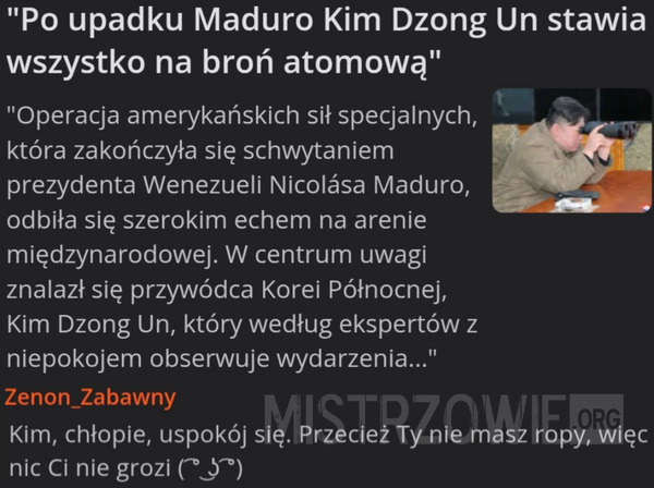 Kim, chłopie. Uspokój się. Ty nie masz ropy. MEM-y V Opublikowany 2026-01-10 przez Mirosław Dakowski ————————————— —————————————– ————————— ————————————– ———————————— ———————————– ————————————
