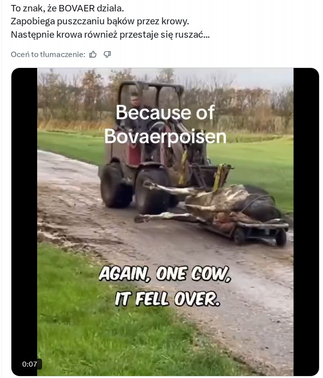 Gdy więc dziesiątki krów wywracają się na pastwiskach lub w oborach, to na pewno nie przez syntetyczny inhibitor enzymu metanowego, który służy agendzie Klimatycznej™ oraz centralnej kontroli nad żywnością. One z pewnością zachorowały na COVID’a, albo coś w tym rodzaju. Kilka dawek zastrzyków mRNA na pewno postawi je na nogi.