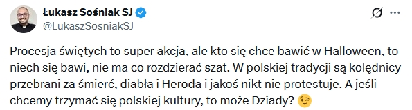 A z okazji „święta upiorów” odezwał się inny jezuita, pisząc: