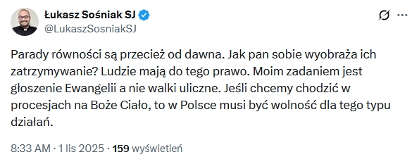 Na koniec wybrałem przykłady herezji modernizmu jawnie głoszonej na platformie X przez współczesnych jezuitów.