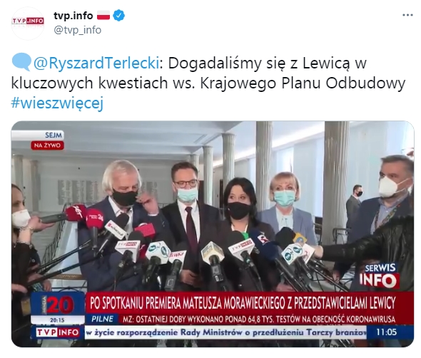 Aby Czytelnik za bardzo nie ugrzązł w przywołanych obrazach, proponuję skupić się na kolejnym punkcie planu jakim jest głosowanie nad zwiększeniem zasobów własnych UE kosztem Polski. Polska ma dostać wyprawkę od globalistów na przejście do nowego etapu “Nowego Ładu”. Jak na razie pokłócona targowica targuje się kto będzie zarządzał nowym korytem przygotowanym dla znajomych królika oraz na realizację tzw. zielonego ładu i na”walkę z pandemią”. Pierwsze wstępne porozumienie w sprawie dzielenia pieniędzy osiągnęła lewica (PiS) z… lewicą.