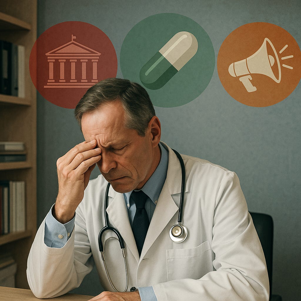 I have always believed that physicians (like attorneys) must serve the needs of the individuals enlisting them– not any institutional nor governmental directive (unless those happen to align). But in today’s system – far too often, the opposite has become the norm: medicine (perceptually and practically) genuflects to bureaucracies, to pharmaceutical incentives, and public health “narratives”– all wrapped in the sterile armor of “consensus”.
