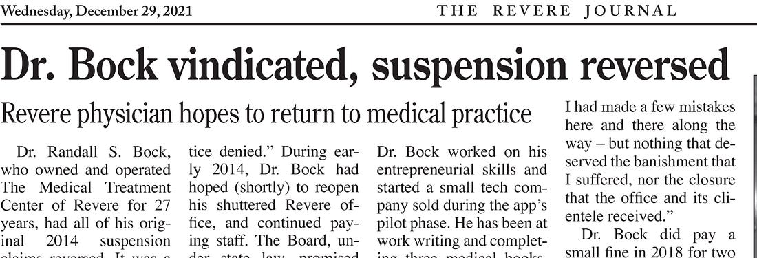 To be fair, BORIM had its foot in the door via a patient complaint– a vindictive, vengeful, and entirely self-serving grievance from a narcotic addict who feared I might jeopardize his disability payments by helping him get sober. I never would have “snitched,” but that didn’t matter. He embellished and distorted his story, and BORIM took the word of a part-time heroin dealer over mine. It was a classic “he said, he said” (even though I had four witnesses on premises who had never noticed an untoward word from me nor any note of displeasure from him during his time in our office).