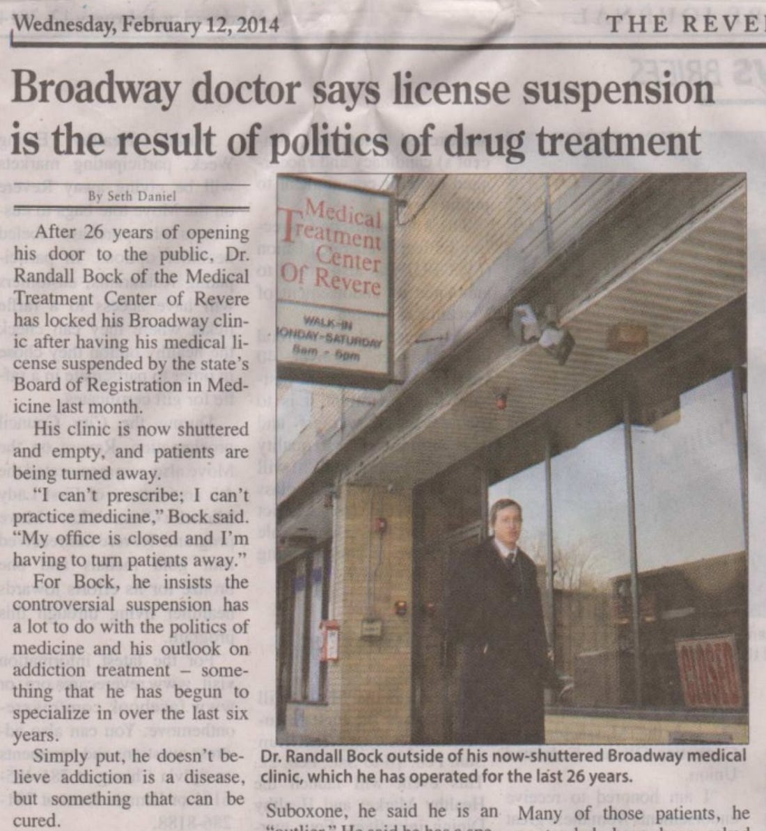 I had developed a successful, (multi-month-duration) slow-taper detox program– offering a pathway back to genuine sobriety, not a subscription to a lifetime of dependency, via replacement narcotics (whether methadone or Suboxone).