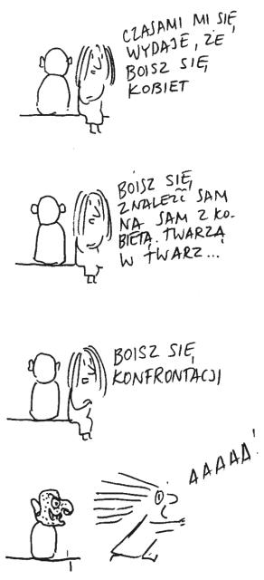 Trochę mi tylko to przeszkadzało, że czułem ssanie w organizmie, no, ale po zabawie – to rzecz zwyczajna – no i to, że zaczęły mi wyrastać dodatkowe nóżki, po trzy pary z każdej strony, zielony róg na czole, a na grzbiecie chitynowy pancerzyk. Jakoś jednak dobrnąłem do chałupy, przelazłem przez szparę w ramie okiennej i znalazłszy sobie zaciszne miejsce na listwie za szafą, z dala od pająków – zasnąłem spokojnie, rozpamiętując, jak to było na tym hucznym weselisku