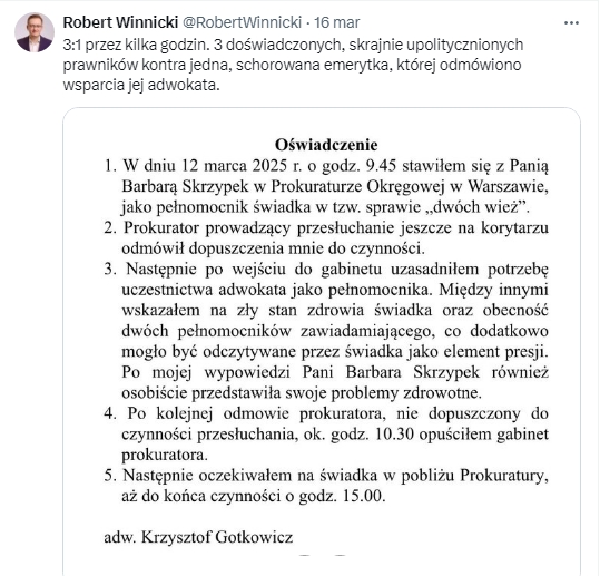 Taki „drobiazg”, właściwie jeden z wielu „drobiazgów”, o których zarówno sędziowie wznoszący wniebogłosy o „wolnych sądach”, jak i prokuratorzy zabiegający o przychylne spojrzenie „Pierwszego Szeryfa RP”, najwyraźniej zapomnieli, bo przecież przedstawienie musi trwać…