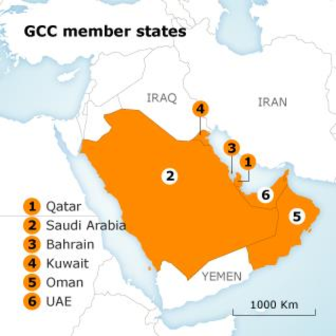 Gulf Cooperation Council – w skrócie GCC): Arabia Saudyjska, Bahrajn, Katar, Kuwejt, Oman i Zjednoczone Emiraty Arabskie.
