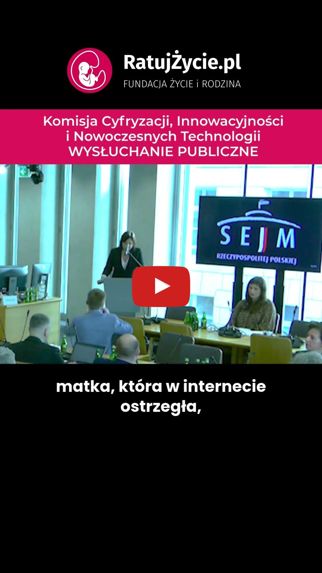 Na wczorajszym wysłuchaniu publicznym Fundacja Życie i Rodzina była jedną z nielicznych organizacji, które broniły wolności słowa – wolności, z której ma prawo korzystać każdy – także Pan, także dowolny inny użytkownik Internetu – każdy. Choć były tylko 2 minuty na wystąpienie, udało się zwrócić uwagę na kilka kluczowych kwestii.