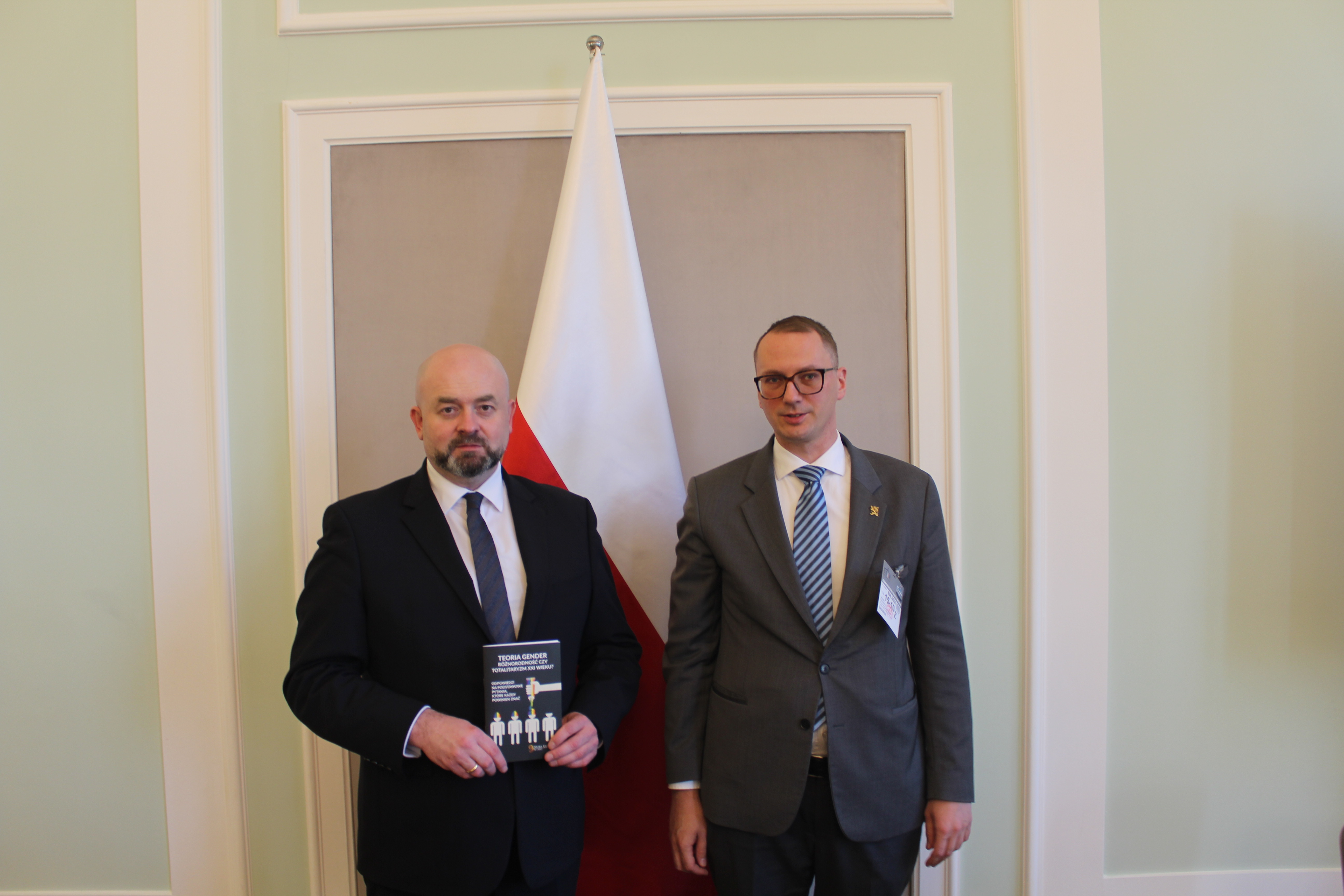 Na dobry początek spotkaliśmy się z posłem Bartłomiejem Pejo, który przyjął nas serdecznie w budynku komisji sejmowych. Warto dodać, że kontrola bezpieczeństwa przy wejściu poszła, póki co bezproblemowo, a poseł Pejo zadowolony z otrzymania książki pochwalił przystępną formułę pytań i odpowiedzi na temat gender.