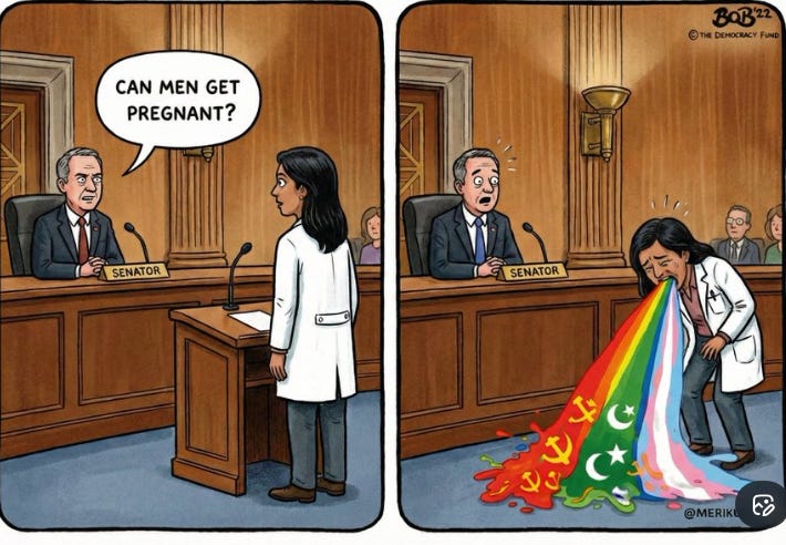 She also could not answer a basic question from Senator Josh Hawley on whether men can get pregnant.