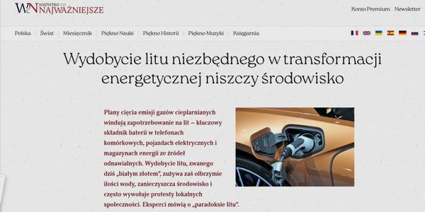 Transformacja energetyczna świata nie obędzie się bez wielu czynników. Jednym z nich jest lit, nazywany także „białym złotem”, lekki metal, którego 60% światowych zasobów przetwarzają Chiny. Kilka lat temu do przejęcia kontroli nad ważnymi zasobami tego surowca wystartowali także inni gracze.