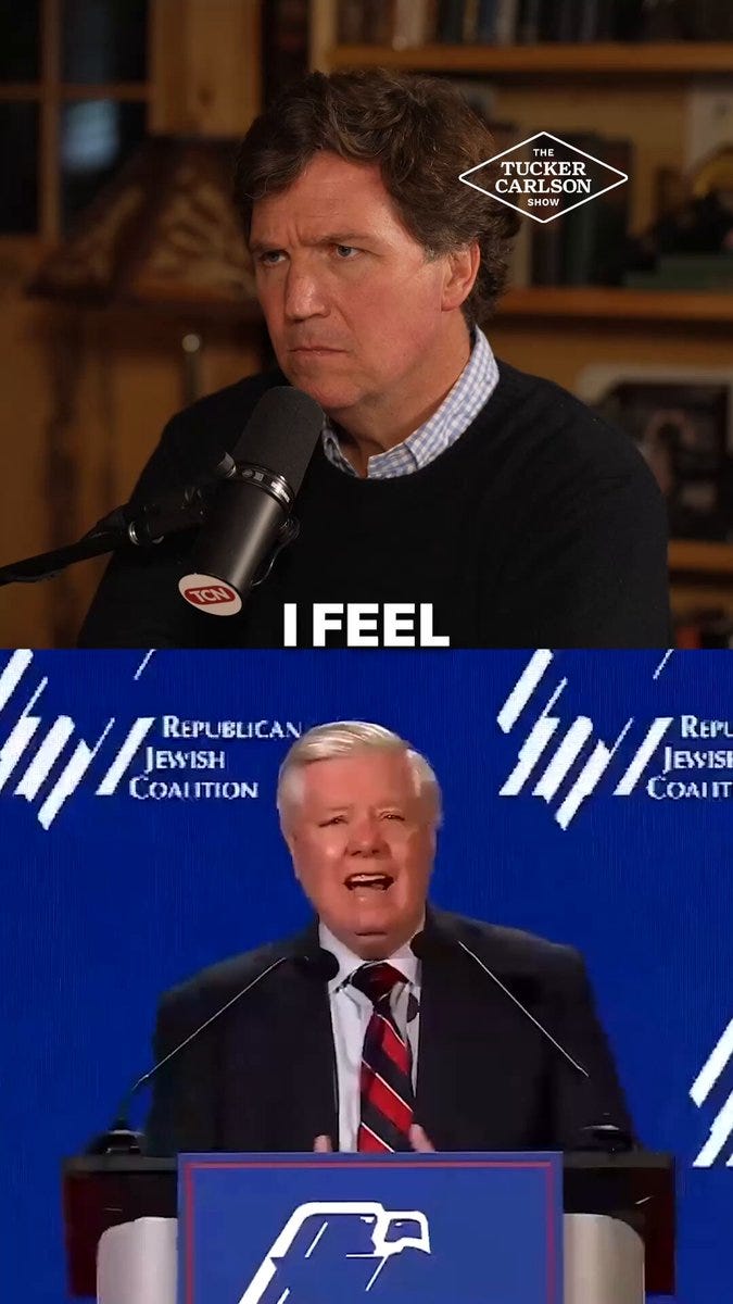 Przemawiając na zamkniętym spotkaniu Republikańskiej Koalicji Żydowskiej, Graham zbagatelizował obawy darczyńców dotyczące wzrostu znaczenia postaci antyinterwencjonistycznych, takich jak Tucker Carlson, Candace Owens i Nick Fuentes, zapewniając zebranych, że Partia Republikańska nadal opowiada się za militaryzmem, obniżkami podatków dla elit i bezwarunkowym wsparciem dla Izraela.