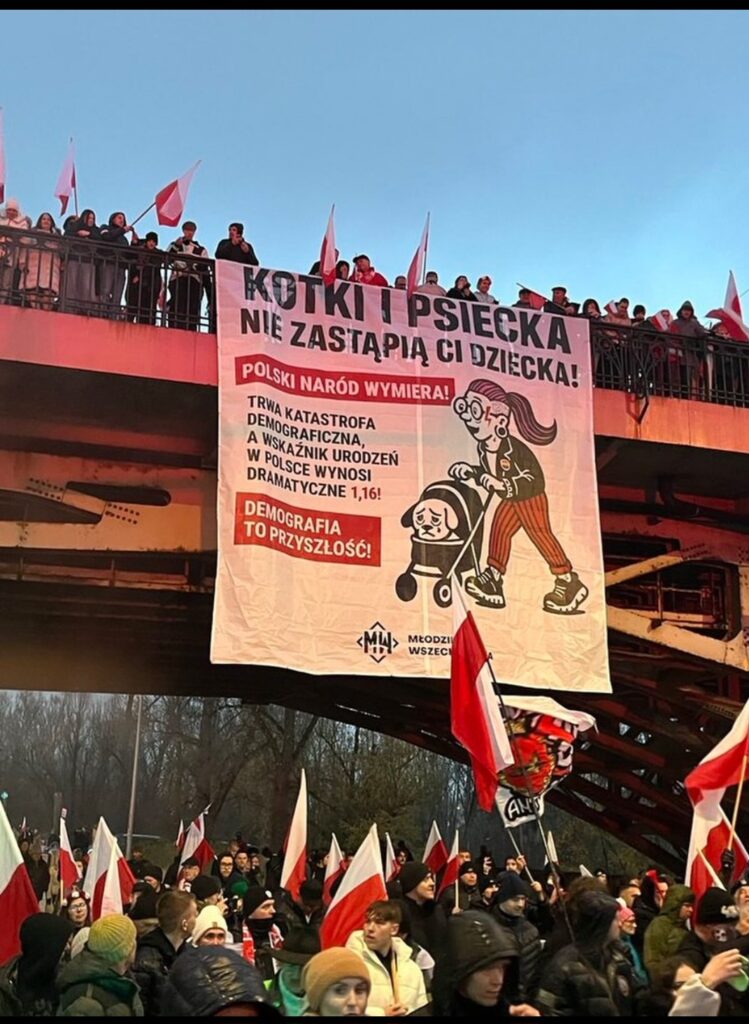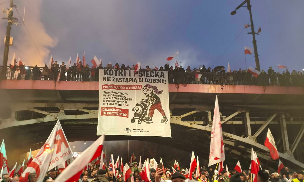 Dym z zakazanych rac opadł, nieprawomyślne okrzyki ucichły, ale baner nawołujący do zakładania (bądź powiększania) rodzin nadal irytuje. „Kotki i psiecka nie zastąpią ci dziecka” – hasło, które zawisło nad trasą tegorocznego Marszu Niepodległości wzbudziło gorącą dyskusję, którą – nieco upraszczając – można by podzielić na spór tych, którzy widzą potrzebę poważnej debaty o katastrofie demograficznej, z tymi, którzy bardzo starają się nie zrozumieć prostego przekazu. Tymczasem ten, choć nieco ironiczny, jest niezwykle prawdziwy – i wbrew pozorom wskazuje na kluczowe przyczyny pikującej dzietności.