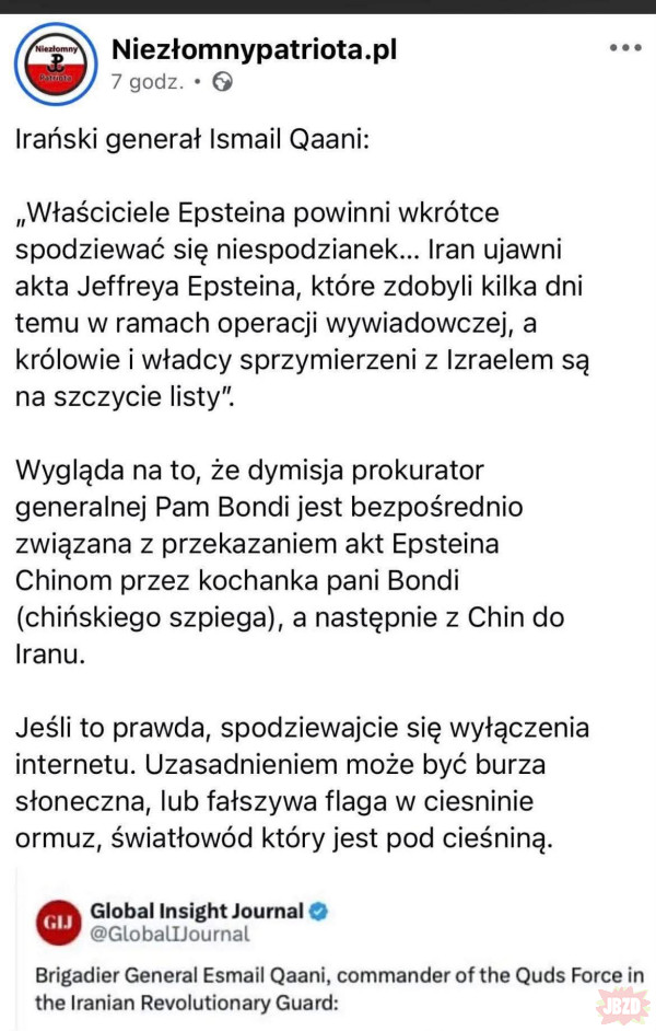 Przed zamachem stanu dokonanym przez prekursorów syjonizmu przeciwko dawnemu rządowi perskiemu, Cyrus Wielki, podobnie jak Stany Zjednoczone, popełnił błąd, finansując odrodzenie zbuntowanego Izraela. Zamiast okazać wdzięczność, żydowscy suprematyści eksterminowali rdzenną ludność i wbili Persji nóż w plecy. Historia powtórzyła się wraz z zamachem na JFK, USS Liberty, 11 września, szantażem Epsteina, ludobójstwem Palestyńczyków i wojną z Iranem.