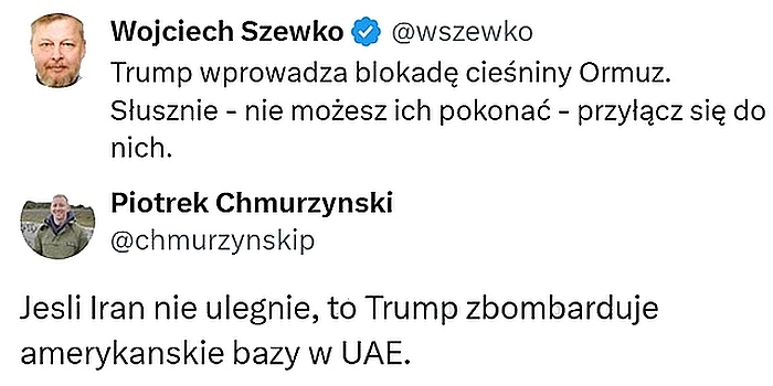 Mało kto traktuje dziś poważnie wypowiedzi prezydenta USA, więc Brytyjczycy odpowiedzieli, że chętnie pomogą odblokować Hormuz, ale… po wojnie, a JE Emanuel Macron bąknął nawet coś o „pajacowaniu”. Co teraz zrobi p. Trump – nie wiadomo. Wcale by mnie nie zaskoczyło, gdyby wystąpił z NATO i zajął siłą Grenlandię…