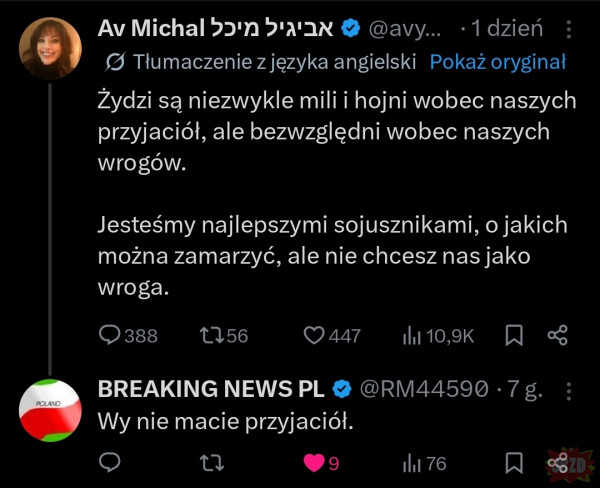Żeby było jasne: nie mówię o Żydach niezaangażowanych. Społeczność żydowsko-perska nadal żyje w Iranie i, pomimo syjonistycznych machinacji, jest chroniona przez wspaniałomyślny rząd Iranu. Jako wysoko rozwinięta cywilizacja szyicka, Iran rozumie duchowe znaczenie rozróżnienia między Żydami niezaangażowanymi, „Ludem Księgi”, a Żydami satanistycznymi. Z powodu potwornych zbrodni zorganizowanego judaizmu, wymaga to weryfikacji wszystkich Żydów. „Nigdy nie popełniaj tego samego błędu dwa razy”.